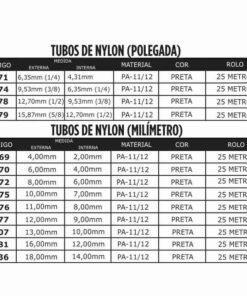 APLICAÇÃO : Mangueira Tubo de Nylon Preta (Milímetro)